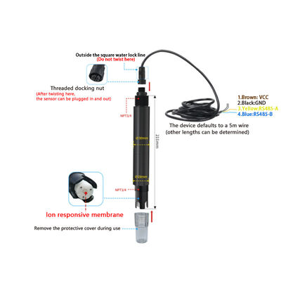 The sensor uses ion selective electrode (ISE) method for magnesium ion concentration detection. The sensitive membrane selectively responds to magnesium ions in water, generating a potential signal positively correlated with ion concentration, which is processed by a high impedance preamplifier and converted into a digital signal. The built-in temperature sensor synchronously collects water temperature data and automatically compensates for the impact of temperature on electrode potential through algorithms to ensure measurement accuracy. This method has the advantages of fast response, good selectivity, and easy maintenance, and is suitable for continuous online monitoring scenarios.