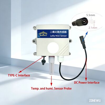 As an IoT wireless sensor, it is developed based on LoRa wireless communication technology, integrated with a built-in nitrogen dioxide (NO₂) sensor and temperature-humidity sensors. It adopts electrochemical detection principles to realize accurate perception of environmental parameters.